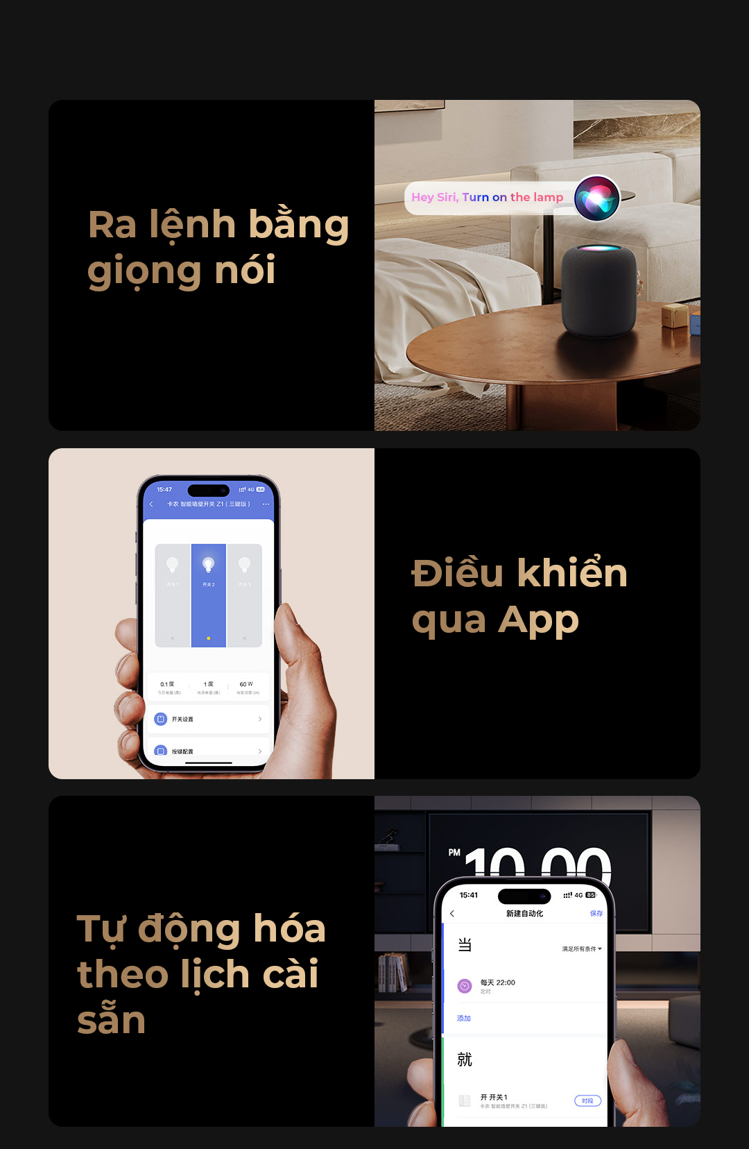 Với tích hợp HomeKit, bạn sẽ có nhiều tùy chọn tự động hóa mở rộng. Không chỉ giới hạn trong việc điều khiển các sản phẩm của Aqara, mà còn cho phép quản lý toàn bộ các thiết bị được kết nối trong hệ sinh thái HomeKit của bạn.