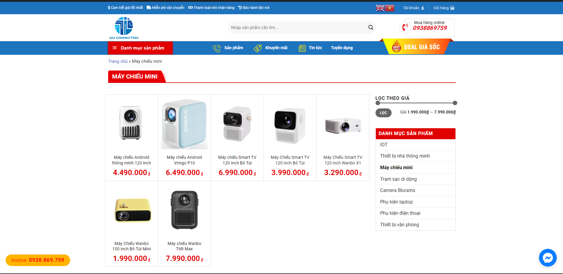 https://cellphones.com.vn/nha-thong-minh/may-chieu.html - SM Connection – Kết nối thông minhCông ty TNHH Kết nối thông minh là đơn vị phân phối sản phẩm máy chiếu mini chính hãng 100%. Chúng tôi có kinh nghiệm rất lâu trong nghành phân phối thiết bị thông minh như trạm sạc, máy phát điện chạy bằng pin, robot hút bụi, máy chiếu …