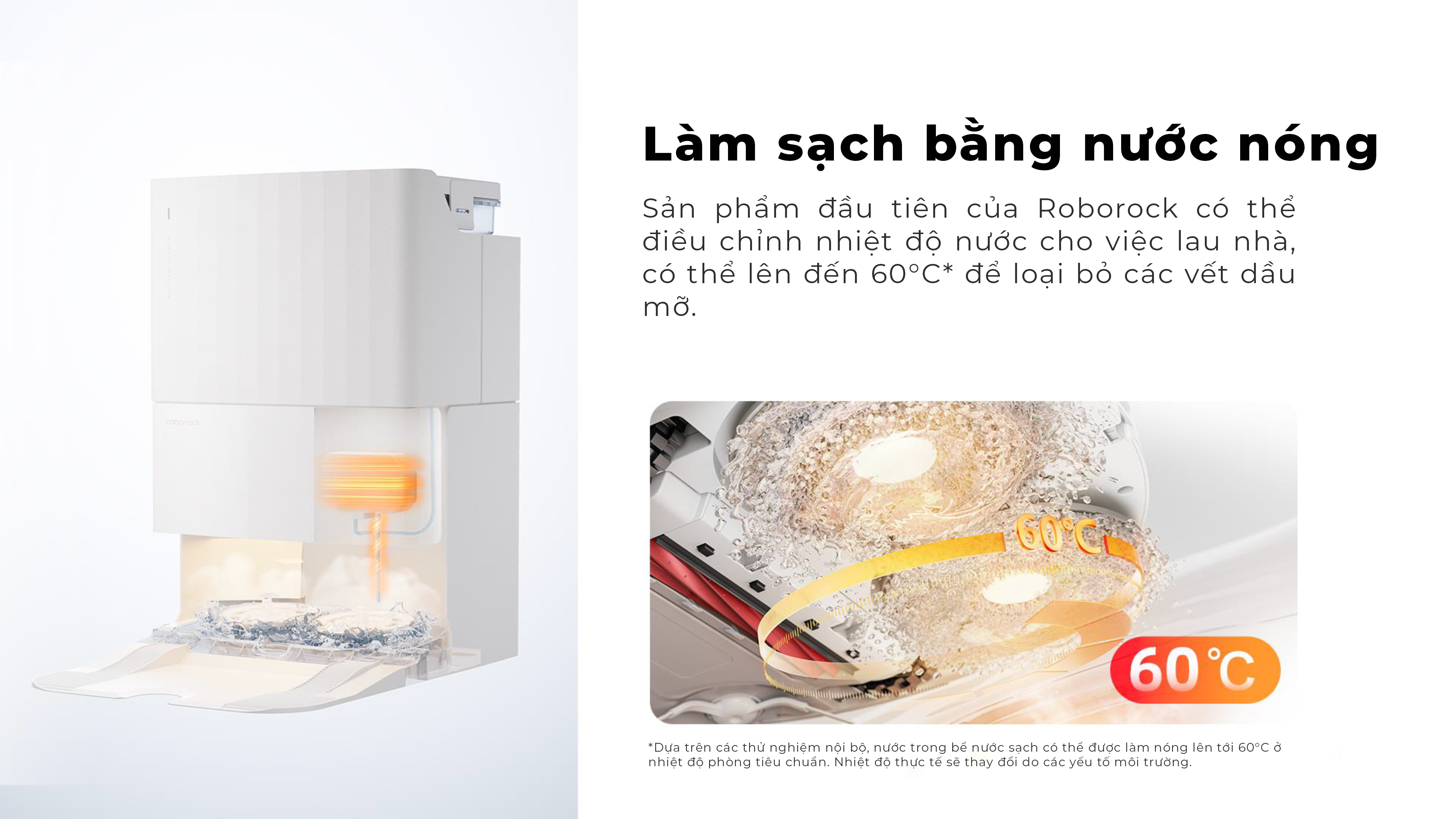 Một cải tiến thú vị cho dòng Q Revo, Roborock Q Revo MaxV giới thiệu tính năng Giặt nước nóng tự động. Điều này đánh dấu sản phẩm đầu tiên của Roborock có nhiệt độ nước có thể điều chỉnh để giặt cây lau nhà, lên tới 60°C để loại bỏ vết dầu một cách hiệu quả. Thông qua khả năng rửa lại thích ứng, Q Revo MaxV điều chỉnh thông minh thời gian giặt cây lau nhà và lưu lượng nước dựa trên độ đục của nước rửa cây lau nhà, tối ưu hóa hiệu quả làm sạch với mức sử dụng nước tối thiểu. Ngoài ra, robot còn xác định các khu vực bị ố nhiều và nhắm mục tiêu vào chúng để lau thêm.
