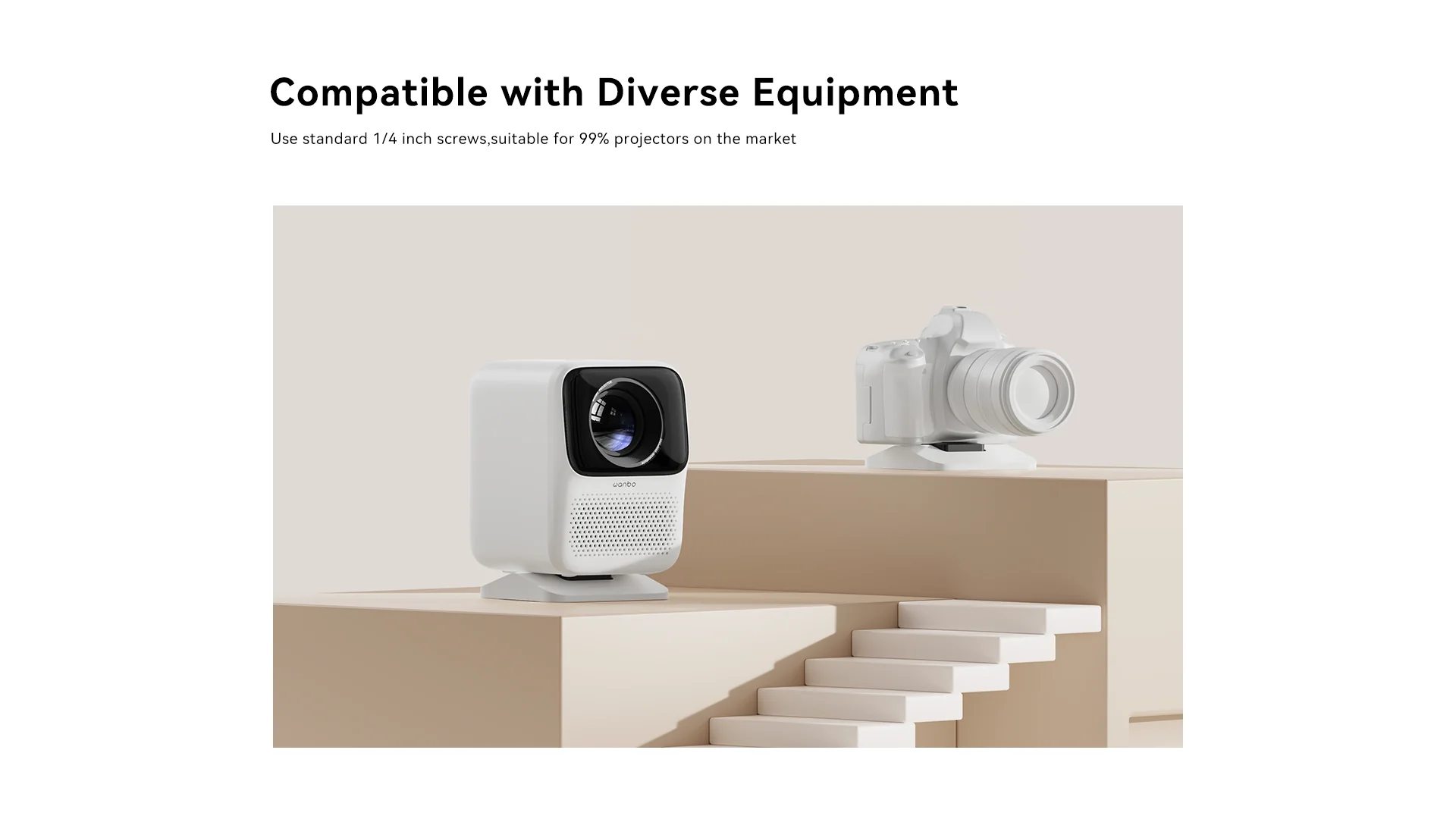 Chân đế máy chiếu để bàn Wanbo là phụ kiện hoàn hảo giúp tối ưu hóa trải nghiệm trình chiếu với thiết kế nhỏ gọn và tinh tế. Phần đầu đế có thể điều chỉnh góc nghiêng 15°, giúp người dùng dễ dàng điều chỉnh hướng chiếu phù hợp. Cơ chế tự khóa giúp cố định máy chiếu chắc chắn mà không lo bị xê dịch. Với trọng lượng nhẹ và tính di động cao, đây là lựa chọn lý tưởng cho các buổi trình chiếu tại nhà hay di chuyển.