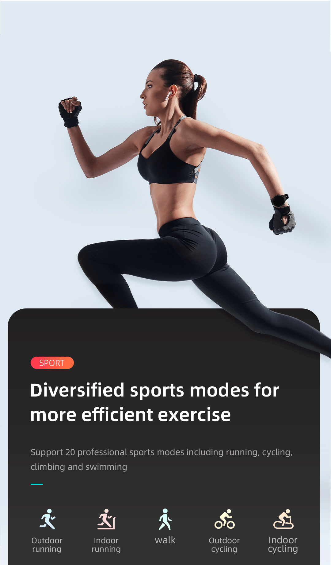 • Hỗ trợ 20 chế độ tập luyện