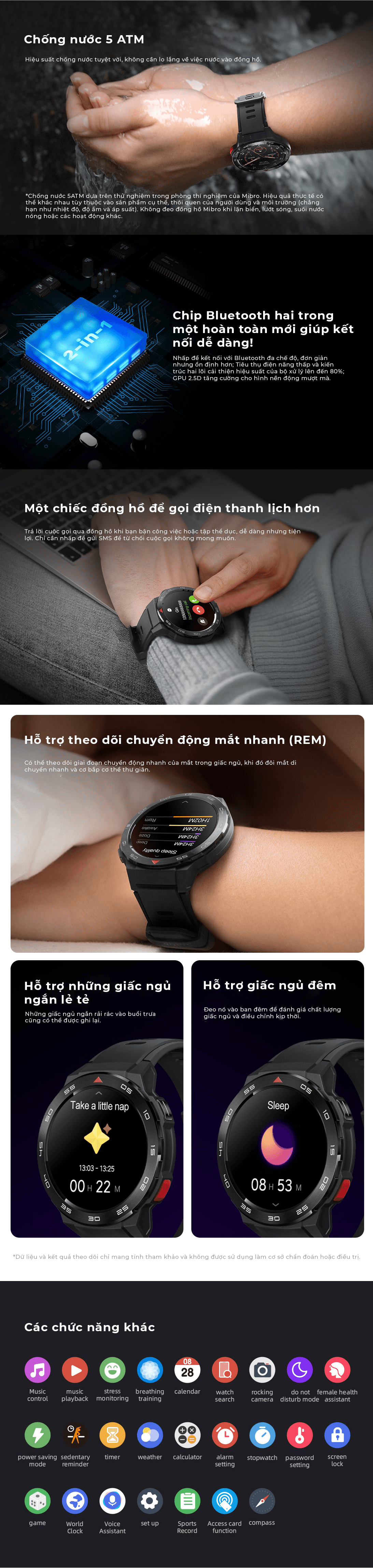 Là sản phẩm mới vừa được cho ra mắt đến từ thương hiệu Mibro. Thiết bị sở hữu nhiều tính năng hiện đại, được làm từ chất liệu vỏ thép không gỉ 316L, trang bị chip lõi kép 2 trong 1, cảm biến chuyển động 9 trục, định vị GPS, màn hình kích thước lên tới 1.43 inch,… Có tính năng nghe gọi Bluetooth, 105 chế độ thể thao tiện ích, cùng khả năng chống nước 5ATM. Đồng hồ Mibro GS Pro là một bản nâng cấp công nghệ tối ưu, nâng tầm phong cách và sức khỏe của bạn lên một tầm cao mới.