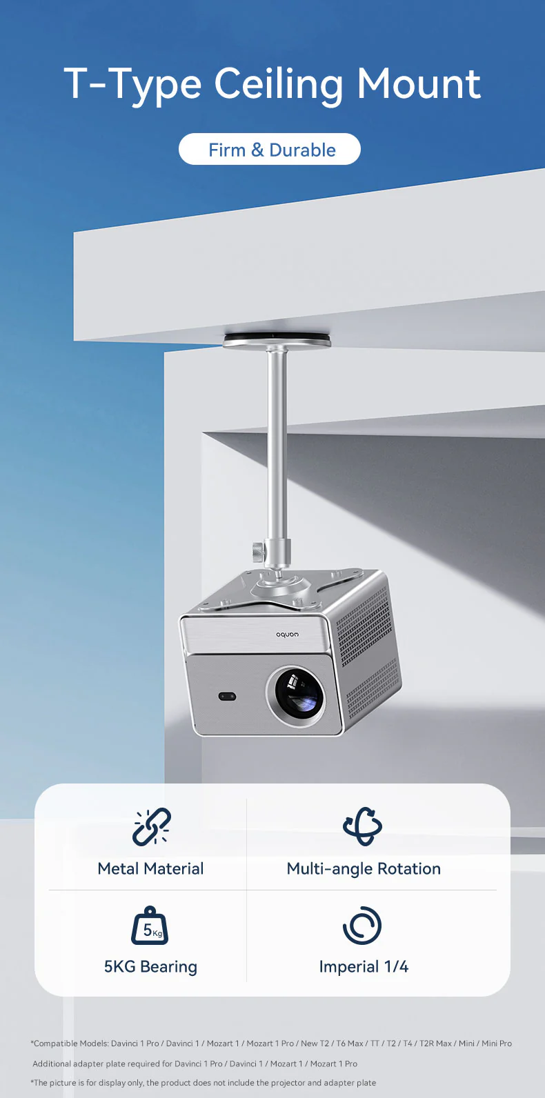 Khuyến nghị chọn: Giá treo trần T-Type + Tấm gắn adapter máy chiếu để tối ưu hóa lắp đặt cho các mẫu tương thích.