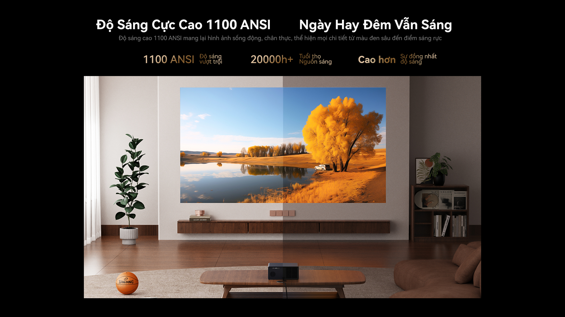 1. Độ sáng 1100 ANSI Lumens – Hình ảnh rõ nét trong mọi điều kiện ánh sáng