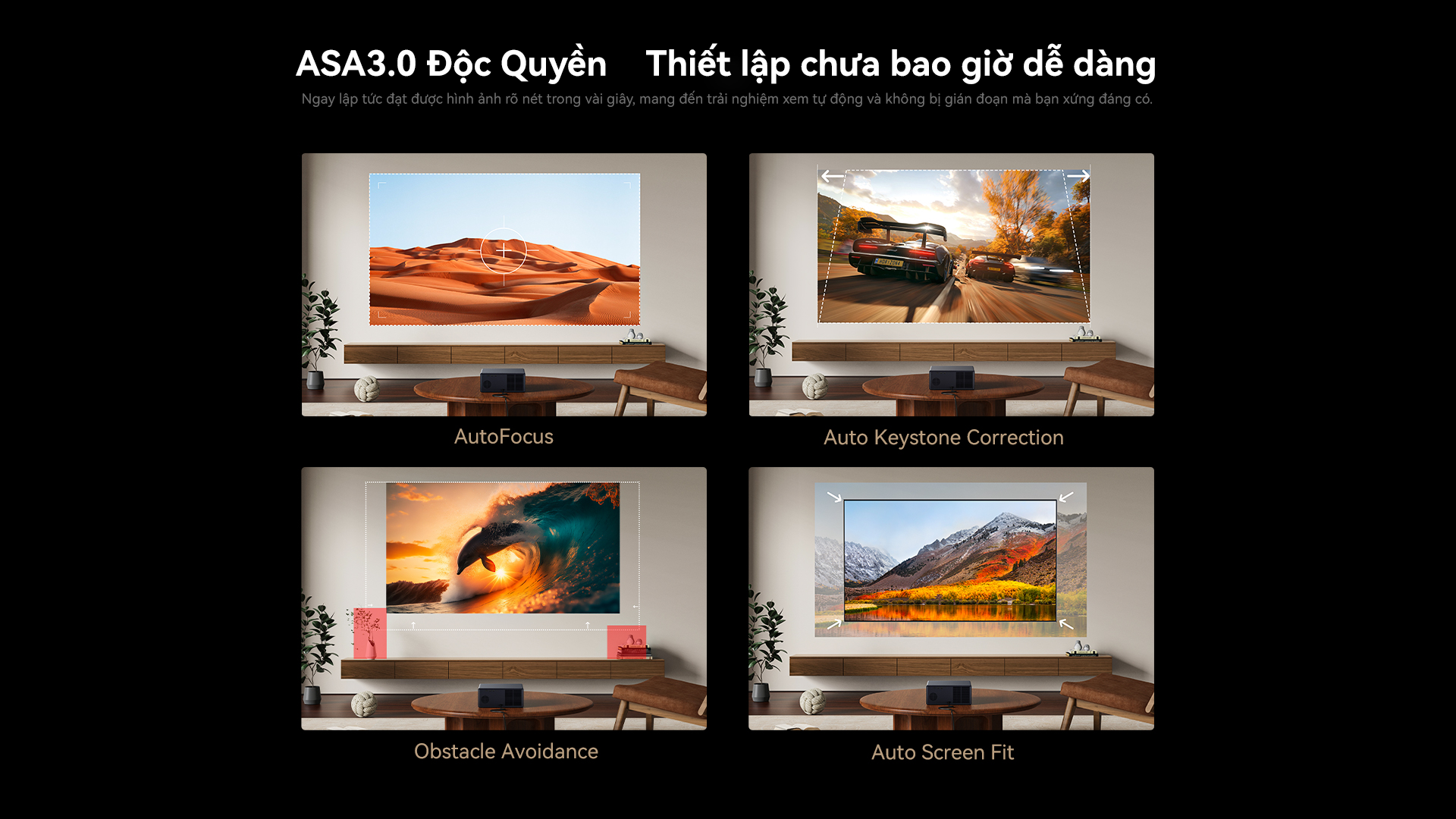 Công nghệ A.S.A 3.0 trên máy chiếu Wanbo là một thuật toán thông minh, giúp tối ưu hóa hình ảnh cho mọi điều kiện chiếu sáng và môi trường sử dụng.