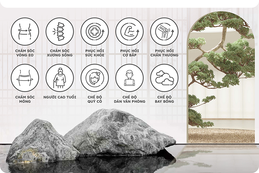 - Nhiệt massage lưng: Tăng cường hiệu quả thư giãn và tuần hoàn máu.