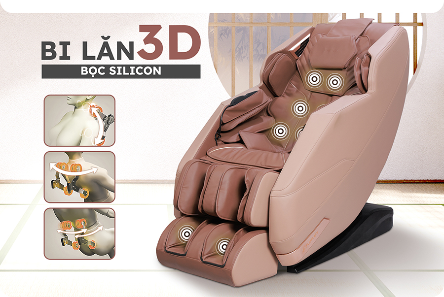 - Bi lăn 3D bọc silicon: Êm ái, ôm sát đường cong cột sống.