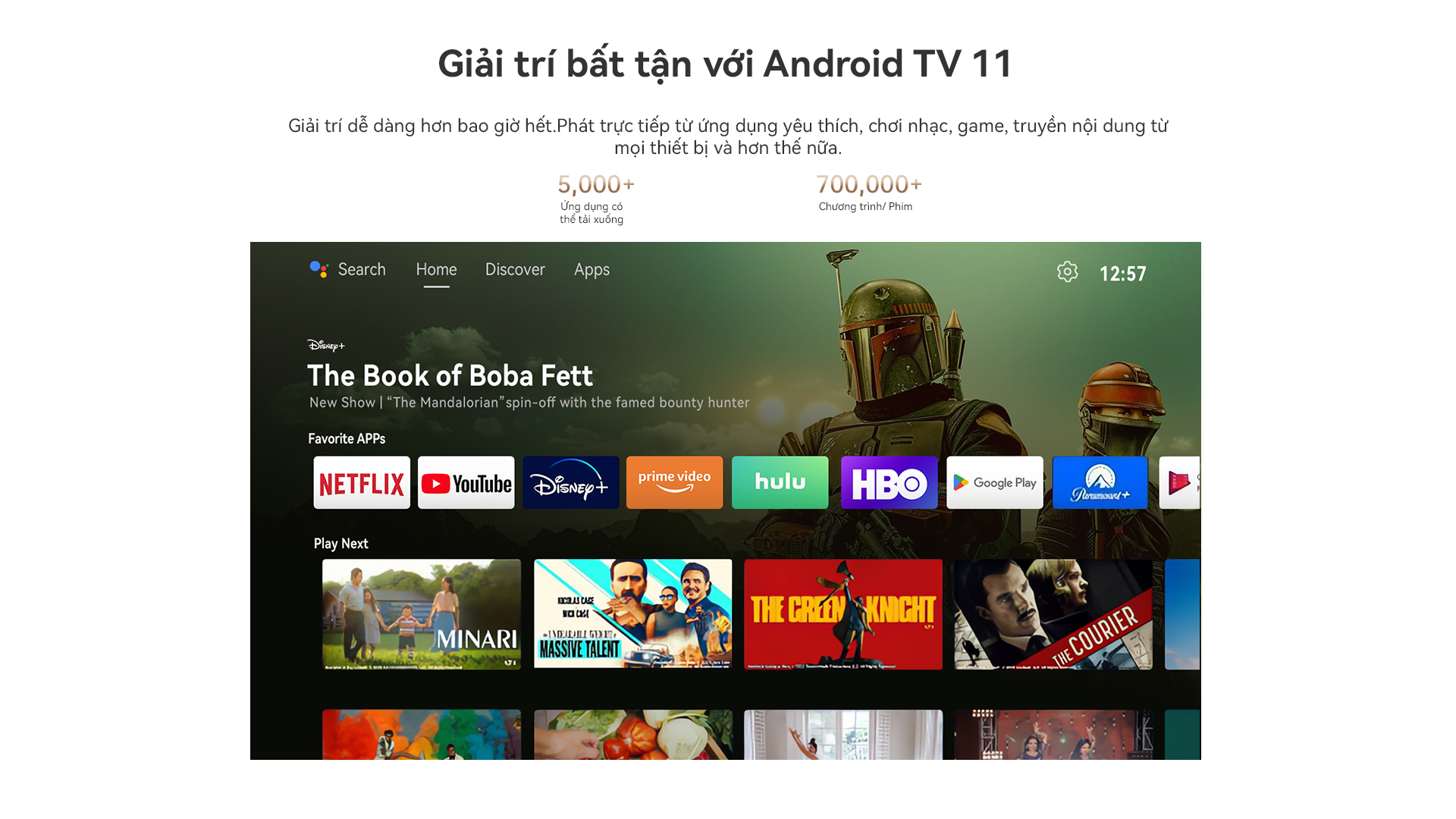 - Kho ứng dụng phong phú: Android TV 11 với hàng loạt ứng dụng giải trí.
