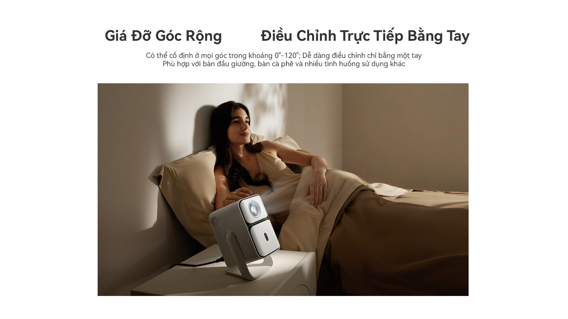 - Thiết kế đột phá: Máy chiếu có chân đế đầu tiên với khả năng điều chỉnh linh hoạt.