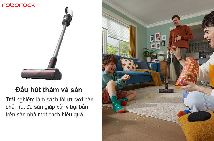 Trang bị đầu hút bụi thảm và sàn, Roborock Dyad Pro Combo lập tức trở thành một chiếc máy hút bụi cầm tay không dây. Nó có thể hút bụi khô trên sàn nhà và thảm trải cực kỳ hiệu quả. Đặc biệt với lực hút lớn lên tới 17.000Pa, mọi bụi bẩn từ các khe kẽ trên sàn nhà hay mắc trong thảm đều được hút sạch sẽ.