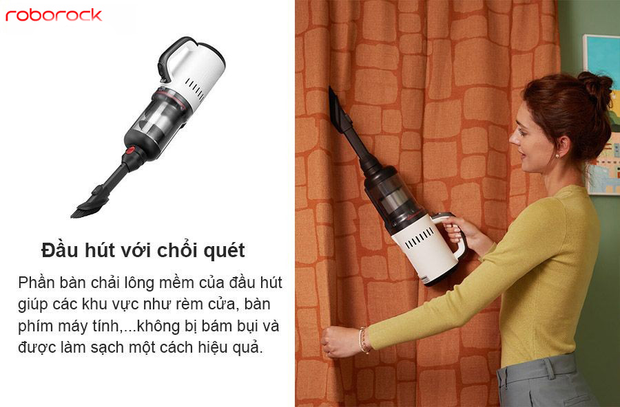 Còn đầu hút với chổi quét bụi thì phù hợp hơn với những vị trí như ngăn tủ, mặt bàn, rèm cửa, bàn phím máy tính,… Phần bàn chải lông mềm của đầu hút giúp các khu vực này không bị bám bụi và được làm sạch một cách hiệu quả.