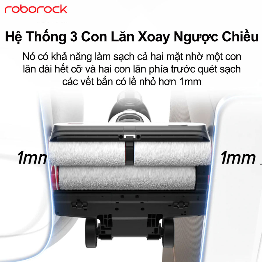 Bàn chải ngược chiều giúp Roborock Dyad Pro hút nước và chất bẩn tốt hơn, hai bàn chải sát nhau, phối hợp với nhau để cuộn lên và xoay vào trong để hoàn thành công việc.