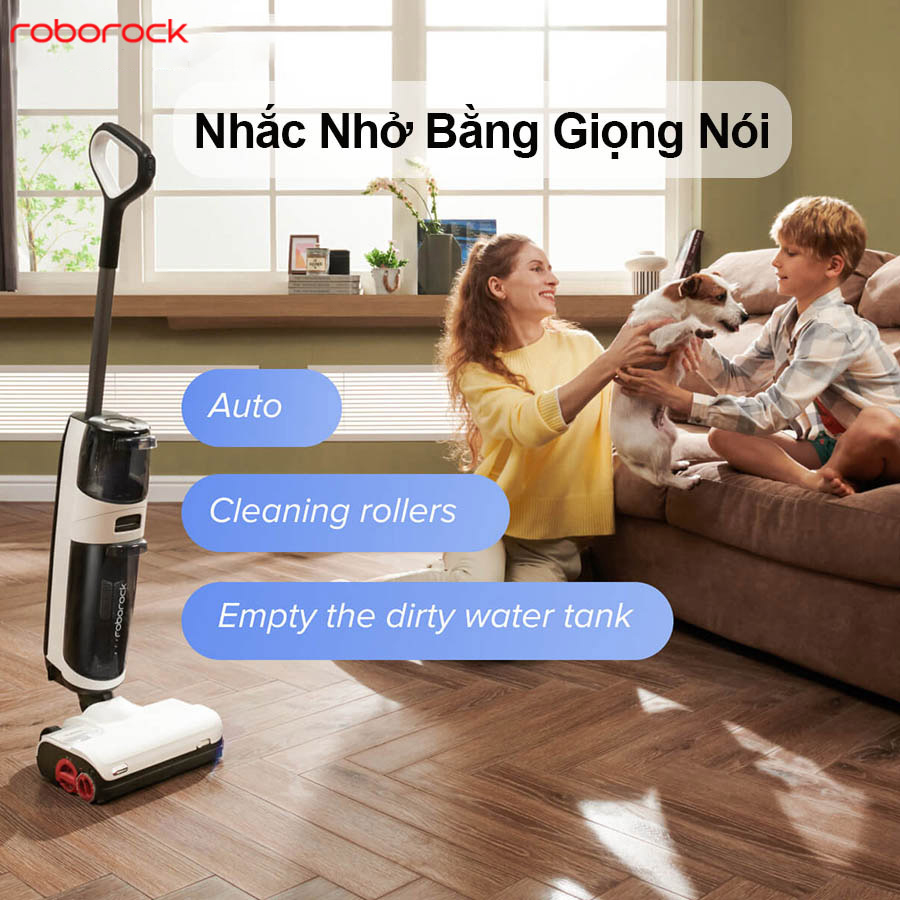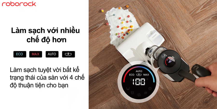 Ngoài ra bạn còn có thể kết nối máy hút bụi và lau nhà cầm tay này với điện thoại qua app để bạn có thể chỉnh thời gian giặt và bật/tắt các chế độ tự giặt và tự sấy khô.