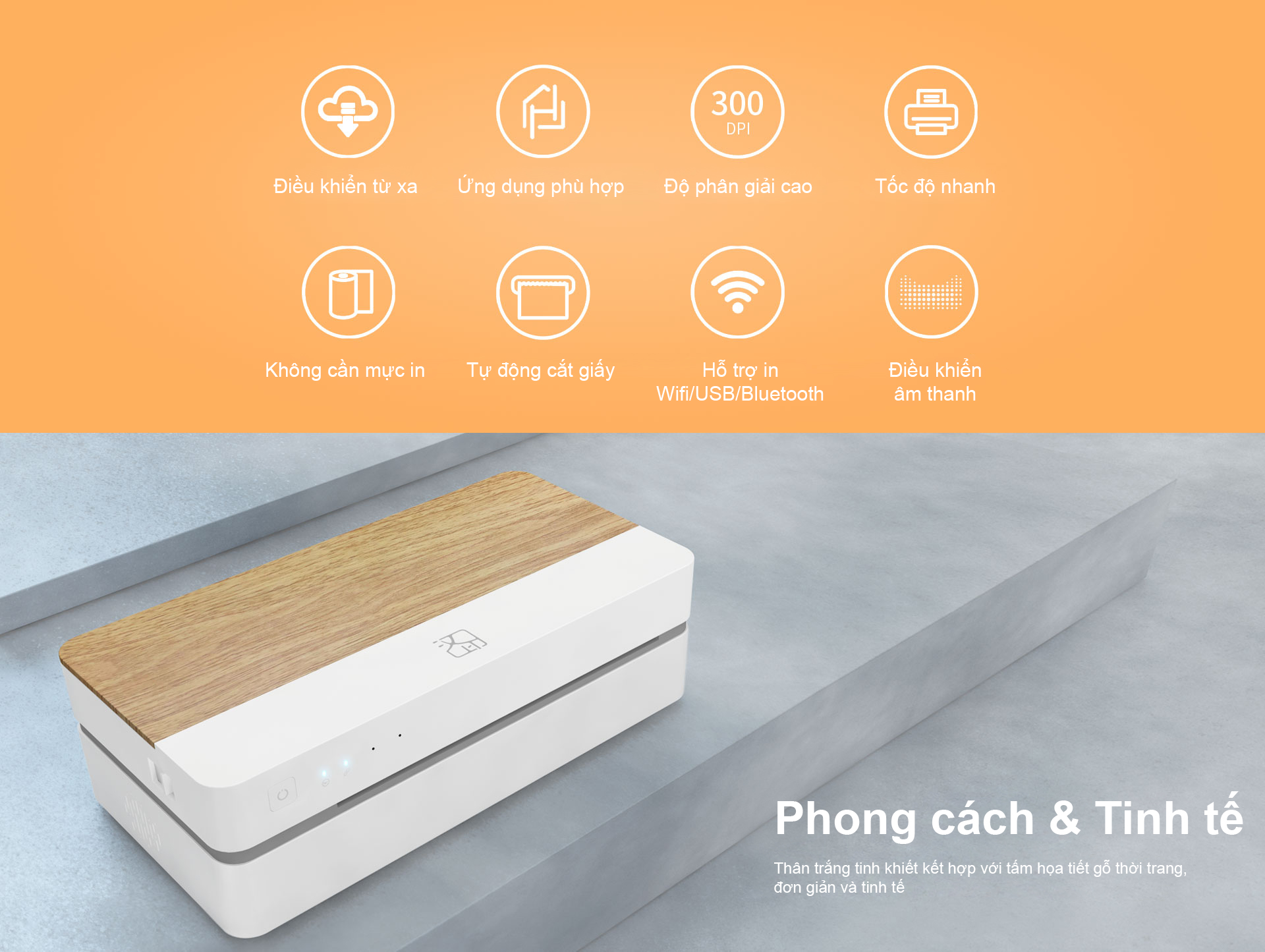 Máy in hỗ trợ kết nối Wifi 2.4G và Bluetooth 4.0 BLE, giúp bạn dễ dàng kết nối và in ấn từ điện thoại di động hoặc các thiết bị không dây khác. Ngoài ra, máy còn có kết nối USB để in trực tiếp từ máy tính.