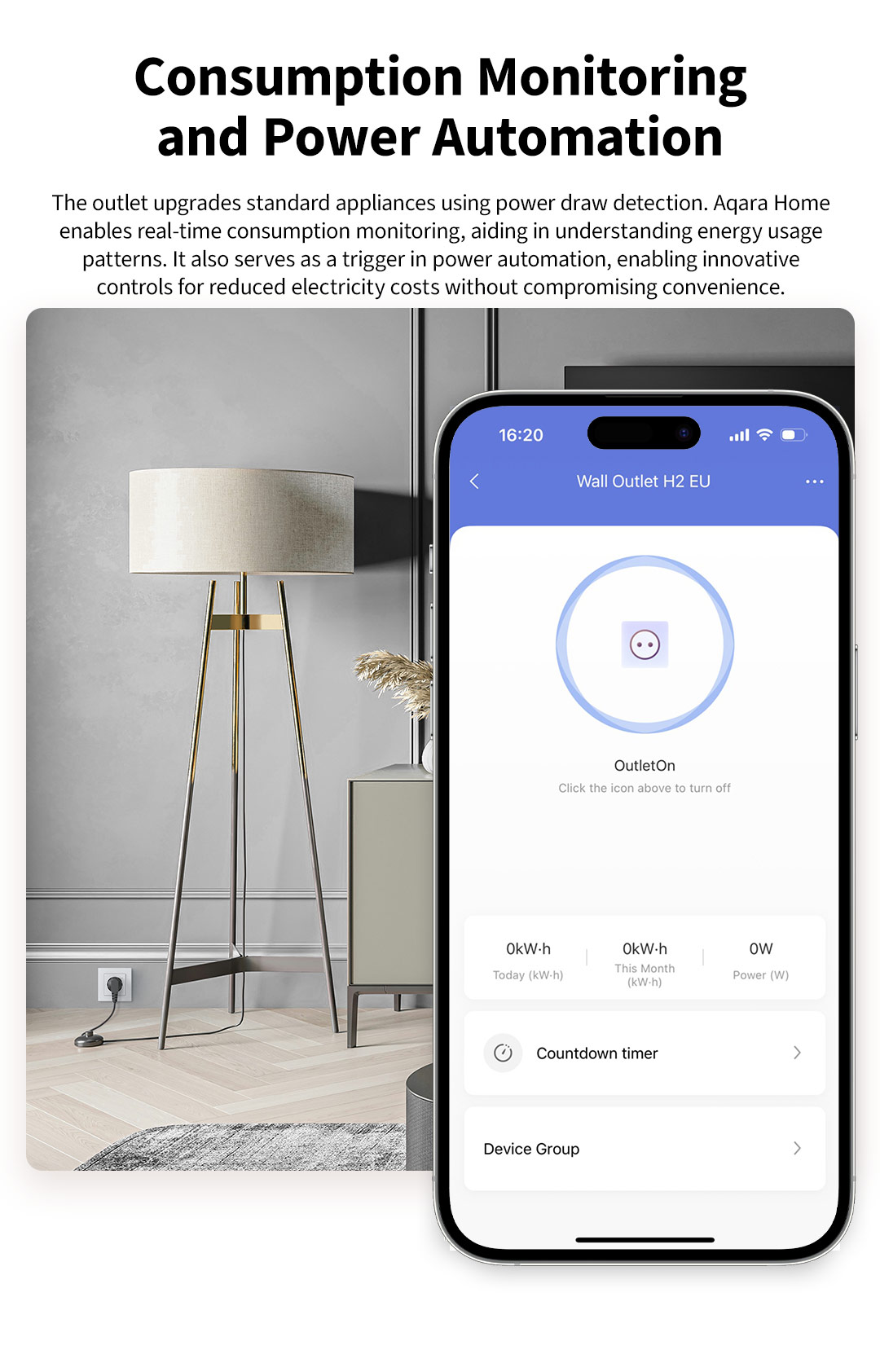 Thiết bị này không chỉ là một ổ cắm thông thường mà còn cho phép theo dõi và quản lý tiêu thụ điện năng. Bạn có thể dễ dàng quan sát lượng điện tiêu thụ của các thiết bị trong nhà thông qua ứng dụng Aqara Home, từ đó tối ưu hóa chi phí và bảo vệ thiết bị.
