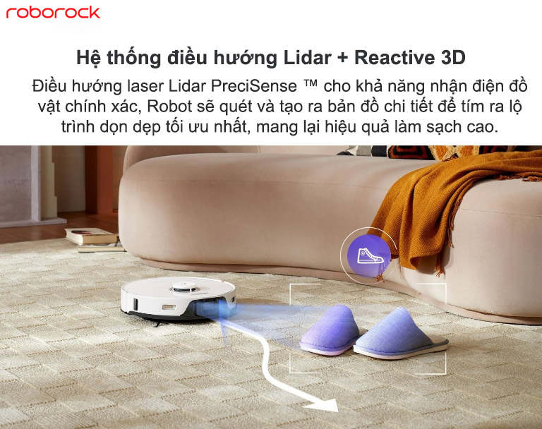 - Hệ thống tránh chướng ngại vật 3D và hệ thống điều hưởng LiDAR thông minh giúp lau sạch mọi ngóc ngách