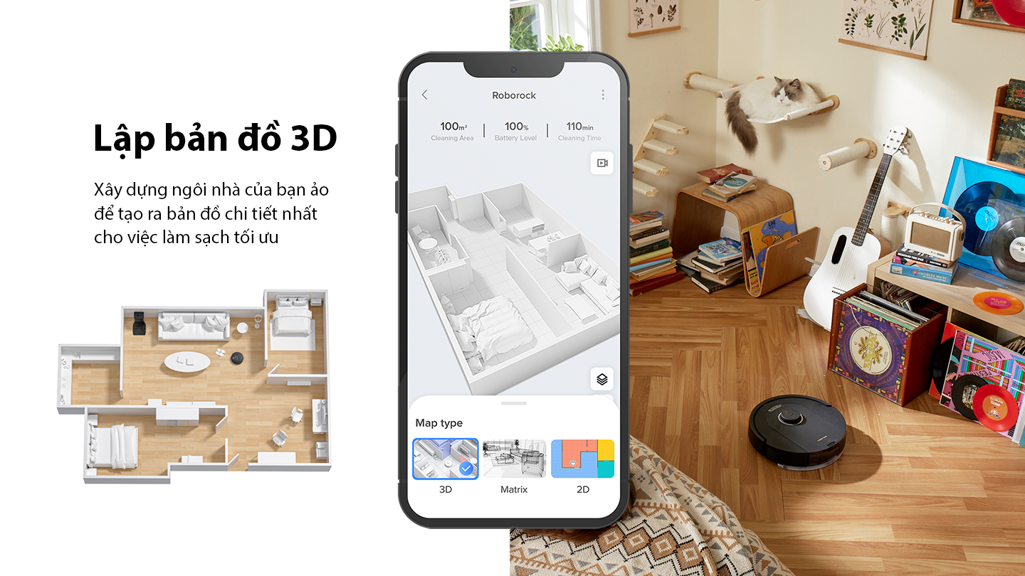 Với ứng dụng Roborock, bạn có toàn quyền kiểm soát máy hút, từ lên lịch làm sạch, điều chỉnh công suất hút đến tạo các kịch bản làm sạch. Nó cũng tương thích với Amazon Alexa, Google Home và Siri để thuận tiện truy cập. *Chỉ hỗ trợ kết nối Wi-Fi 2.4G.*