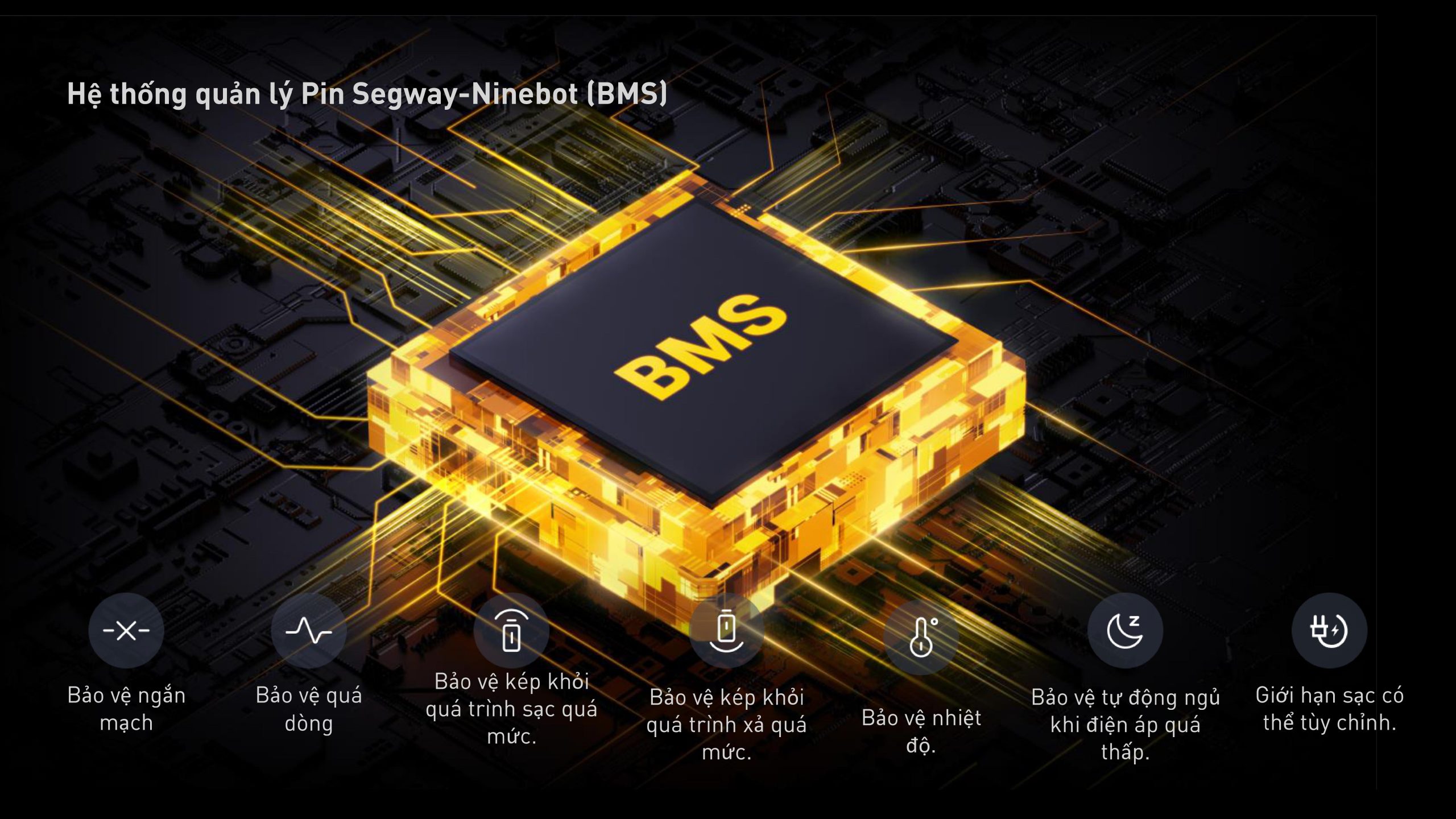 Nhờ Hệ thống quản lý pin tiên tiến trên Segway-Ninebot F2 (BMS) với 7 cơ chế bảo vệ tổng thể, đảm bảo tuổi thọ của pin và sự an toàn của bạn mọi lúc.